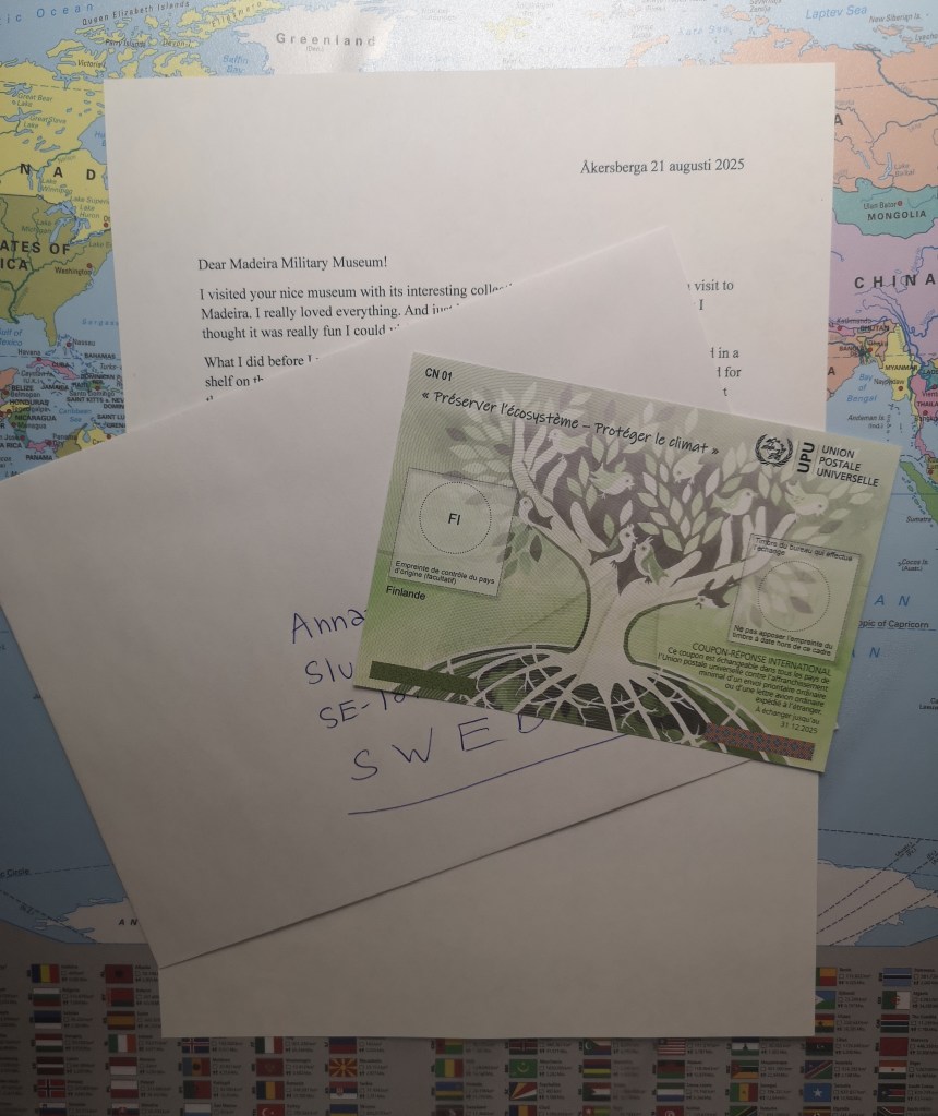 Det tog fem veckor i våras för vykort att nå Sverige efter att ha postats i Ponta Delgada, huvudstad på Azorerna. Portugisiska postverket verkar ro försändelserna från öarna i Atlanten till det europeiska fastlandet. Så jag hade mina dubier om när jag skulle få svar från Militärmuseet i Funchal på Madeira? Också den en portugisisk -och ljuvlig- ö. Först skulle ju mitt brev till museet komma fram, en försändelse som jag lade på lådan här i Åkersberga den 21 augusti.