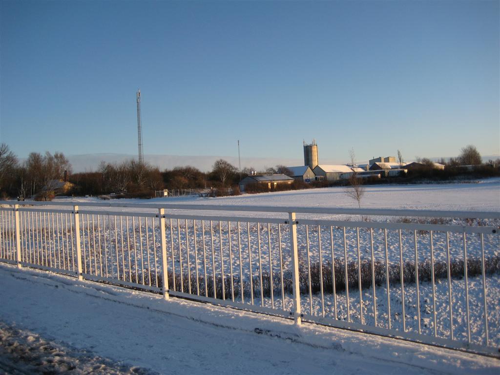Snövitt och kritbruk passar ihop. Vädret ändrades dramatiskt igår, snön föll i flera omgångar och la sig! Längst till vänster skymtar det lilla gamla huset jag tidigare bekymrat skrivit om enär det verkade förfalla vilket verkade synd för det ser ut att ha något att göra med kritbrukens historia här ute i Kvarnby. Men sedan en tid tillbaka pågår renoveringsarbete med nytt tak också, tror jag. Fint! Jag borde ha spelat in ljuden som hördes när jag gick förbi backen utanför bild till vänster för de är så sällsynta här nere: barn som skriker av skratt när de åker pulka och de senares dova läte när plast skär genom snön.