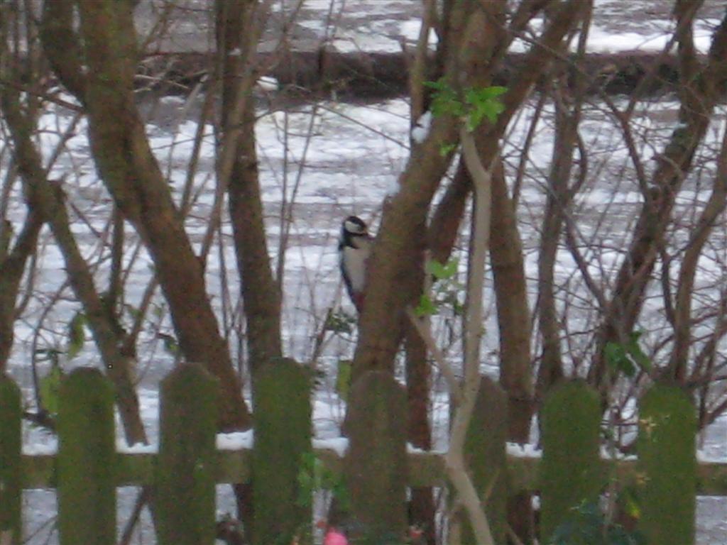 Hemma i trädgården räcker det med att varannan dag hälla i några nävar frön i en foderautomat för att dra till sig befjädrat vinterliv: gråsparv, pilfink, talgoxe, blåmes, koltrast, gärdsmyg samt herr och fru bofink; de är stamgäster. Men idag kom en mer sällsynt gynnare på besök: ett exemplar av den så kallade större hackspetten. Notera gärna att syrenen redan förberett nästa års grönliv och att rosorna hänger med än också. Kameran förstorade bilden bortom sans och vett så den närmade sig en annan konstform. Också en resa. Huvudsaken är att vara i rörelse.