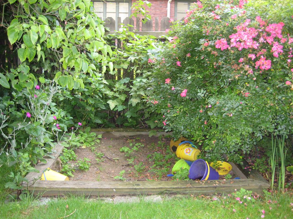 Sandlåda på en blomstrande bakgård i Majorna i Göteborg. Men det är inte den bilden jag ser. Utan den jag tog för 20 år sedan. Då två små barn satt i sanden och lekte och den enas mamma lutade sig mot staketet. Barnen sitter så klart inte kvar i sina babyoveraller och mamman har slutat stå där och övervaka dem i bakgrunden. Livet går ju vidare; vi växer väl alla upp och inser det. Till slut. Och det är det som den här bilden säger mig på ett mer vemodigt sätt än någonting annat jag kan komma på just nu.