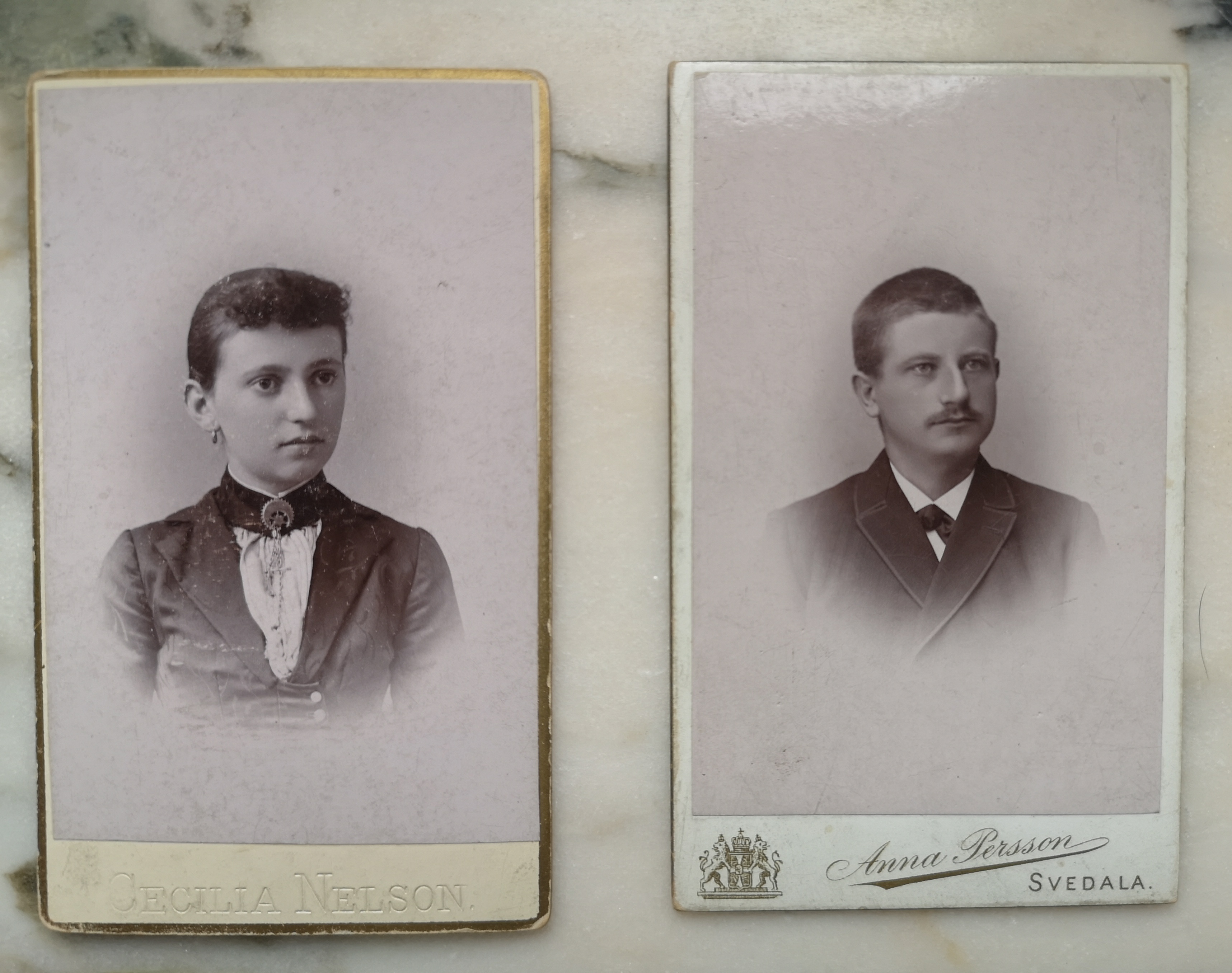 Här har vi Karna fotograferad i Cecilia Nelsons klassiska ateljé på Södra Förstadsgatan 36 i Malmö. Och bredvid syns Anders fångad i yngre år, denna gång av fotograf Anna Persson i Svedala.