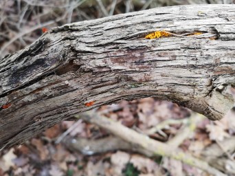 Man behöver inte gå långt, om man bor i Kvarnby, för att hitta märkliga livsformer. Här tre svampar som växer på tre trädstammar vid den långa syrenallen i Gyllins trädgård. I nedan ordning: Gullkrös, Judasöra och en mussling av något slag. Judasöronen var vid fotograferingen häromdagen stenhårda och gullkrös pytteliten och även synlig i några ännu mindre och röda exemplar vilket syns på bilden. De här fenomenen beror på torr väderlek. Klicka på fotona för förstoring.