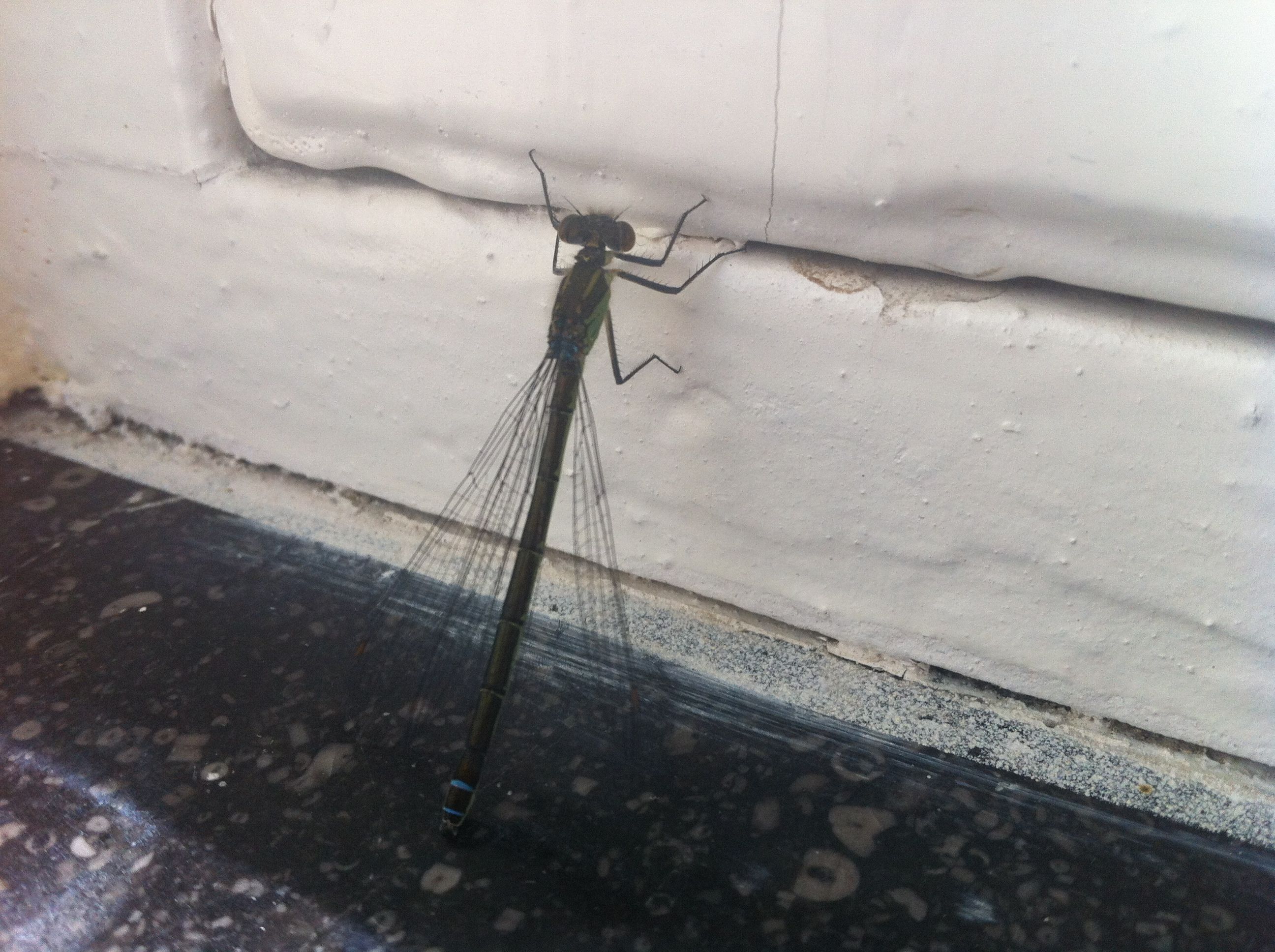 Säg hej till min kortvariga rumskamrat i mitt tjänsterum på nya jobbet: troligen en Större rödögonflickslända, sa specialisten i branschen. Den förstnämnda stod inte ut särskilt länge med att jag flyttat in utan gjorde desperata utbrytningsförsök tills jag kom på hur man öppnade fönstren och kunde släppa ut henom. När jag gjorde det insåg jag vidden av mitt jobbyte: Genom det öppna fönstret kom Malmö emot mig med sina egna ljud och dofter, min stad inte bara låter annorlunda än Lund, den luktar som sig själv också. Jag är bara provanställd, men jag tänker kedja fast mig!