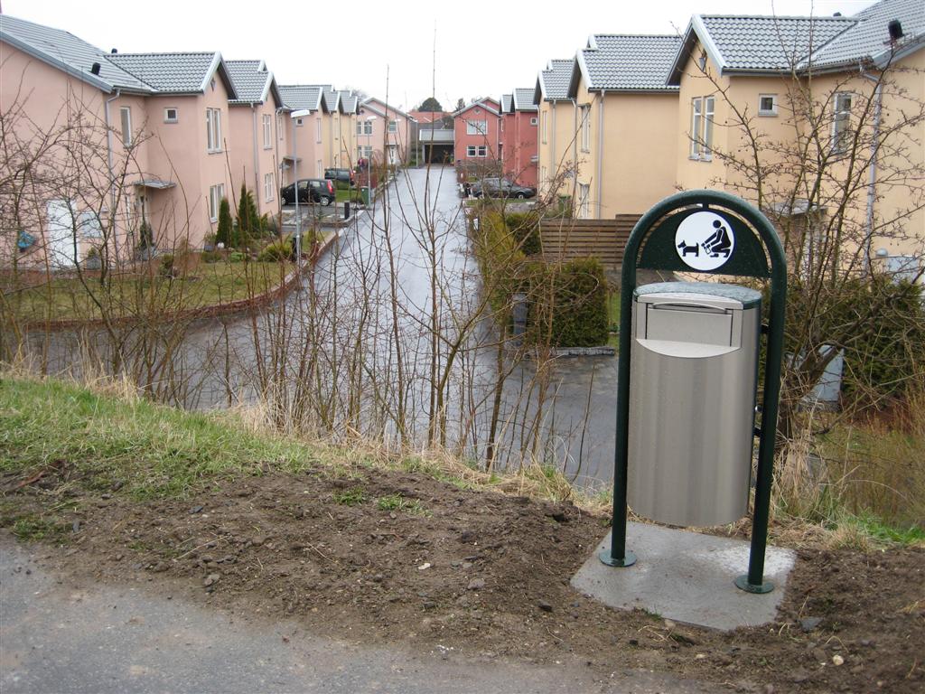 I veckan har Kvarnby, som kanske den yttersta utposten, begåvats med Malmös nya stationer för hundbajs. Utbudet har även förtätats; åtminstone en insamlingsenhet mer, den på bilden, har placerats ut i vår stadsdel. I bakgrunden ses en nybyggnation som när den ursprungligen projekterades på 90-talet marknadsfördes av entreprenören med stora braskande annonser i Sydsvenskan under devisen: På natursköna Kvarnby ängar kommer att uppföras -och så följde en uppräkning av alla hustyper som var aktuella. Och den annonsen var bokstavligt menad. För det finns inte en kvadratmeter kvar av de ängarna. (29 mars 2008)
