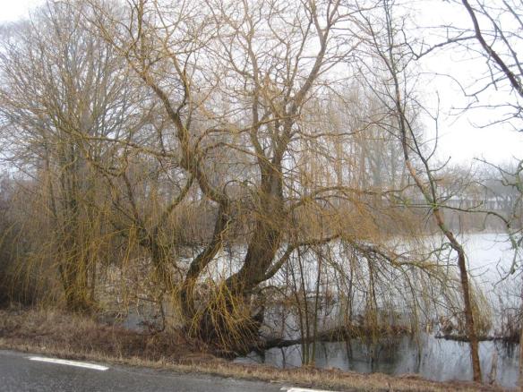 Prästgårdsdammen i Södra Sallerup ser ut att innehålla mangroveträsk eller nått. Våren framstår fortfarande som en restaurang en timme innan den öppnar.