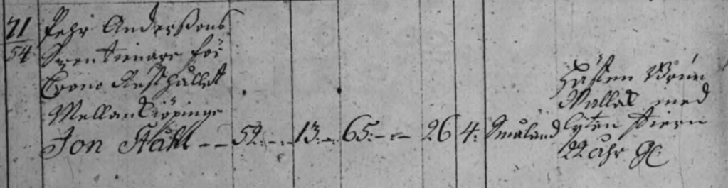 “1724 var han “Pehr Anderssons swentienare (=ryttare) för Crono Rusthållet Mellanköpinge” (som har #71 i rullorna). Han är 26 år gammal, har tjänat i 4 år, och är från Småland. Resten av anteckningarna handlar om rusthållet, och hästen.” Så skriver Staffan Bergh i ett svar.